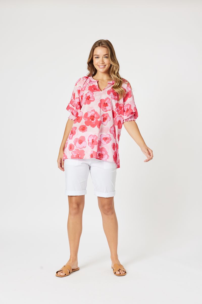 Pink Poppy Floral Blouse | Women’s Cotton Floral Top Australia